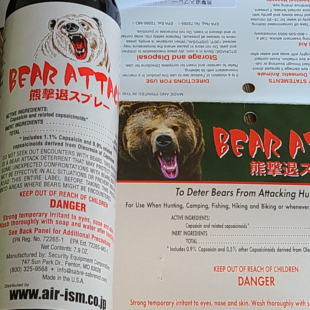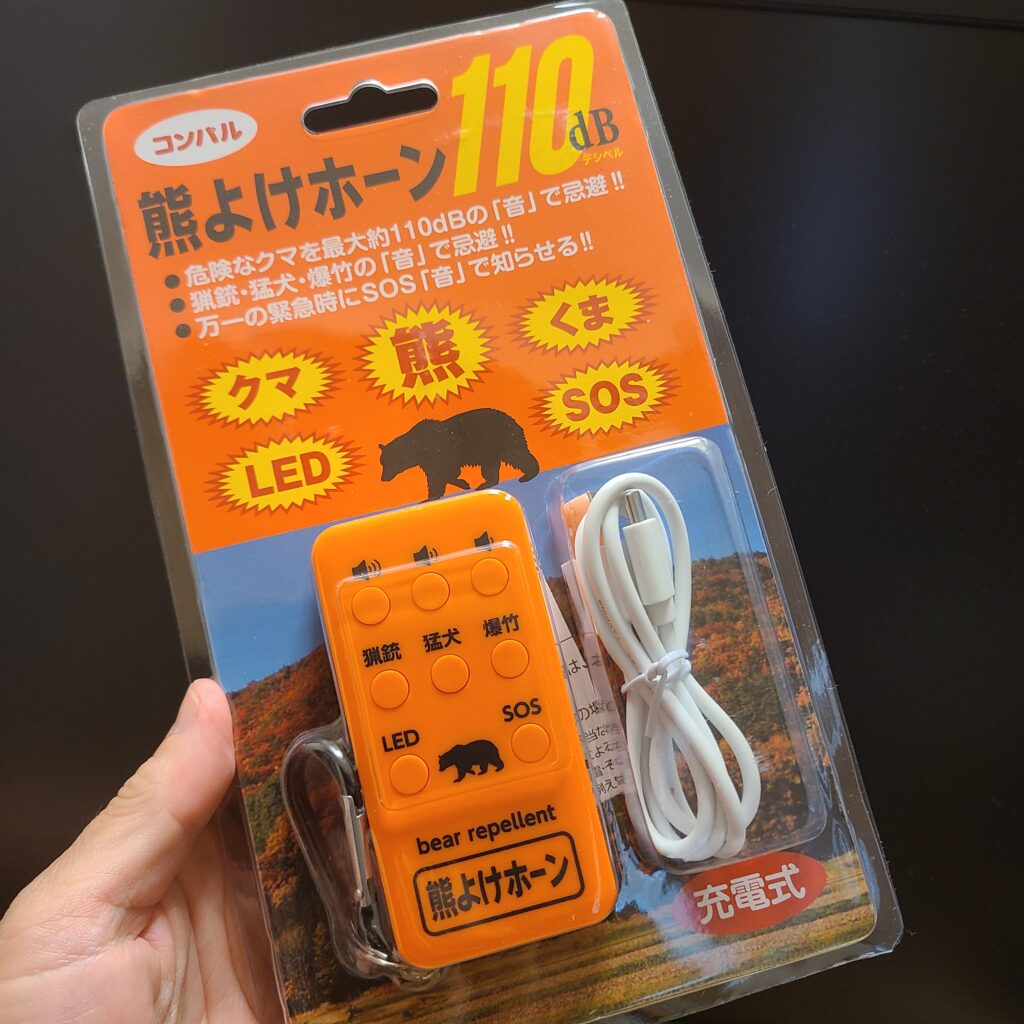 私が持っている物も一部紹介しておきます。他にも熊鈴を持っています。最近、クマスプレーは価格が高騰しているようですが、ケチらないほうが良いと思います。