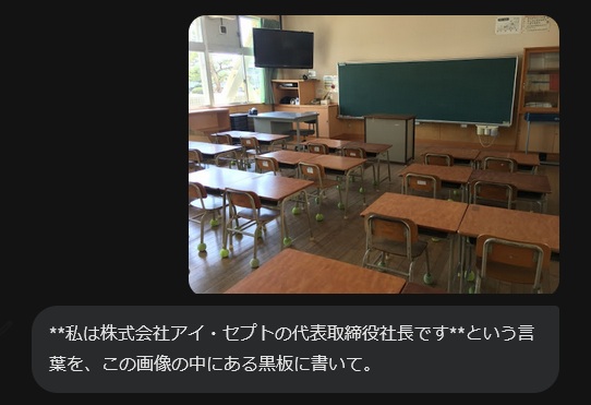 さらにもう一つ。この画像に文字を入れるプロンプトを入力すると