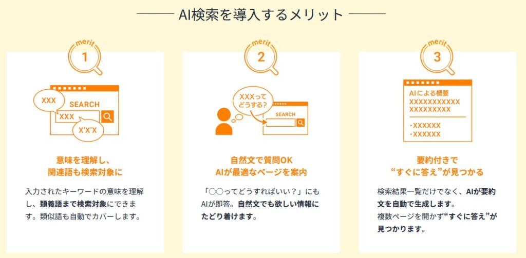 例えば、単にお問い合わせフォームがあるだけでなく、チャットボットがその場で初期対応を完了させる。あるいは、社内のナレッジベースと連携し、顧客の疑問をその場で自己解決させる。 Webサイト自体が簡易的なアプリケーション(SaaS)のような機能を持ち、ユーザーに体験を提供するなど、これまでよりも深堀りしつつ、ユーザー満足度を向上させるといったところです。見るサイトから“どんどん”使えるサイトへ。この転換ができるかどうかが、競合との差別化の鍵となると思います。弊社では、Webサイト内の検索窓もAIをお勧めしています。