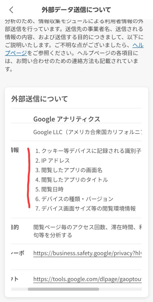 ただし、以下の内容については、グーグルに送信されるようです。
