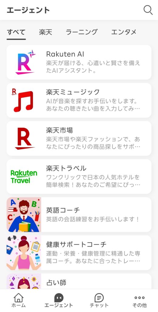 楽天AIとは、楽天グループが独自に開発したAIアシスタントです。 例えばChatGPTのように自然な言葉でやりとりができ、さらに楽天市場の商品検索や楽天エコシステムのサービスと深く連携しているのが最大の特長です。