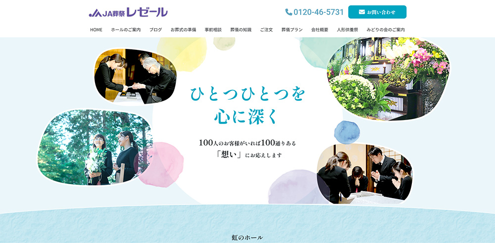 地域に根ざした葬祭サービスの想いが伝わるWebサイトとして、機能性とデザイン性の両立を図ったリニューアル事例です。